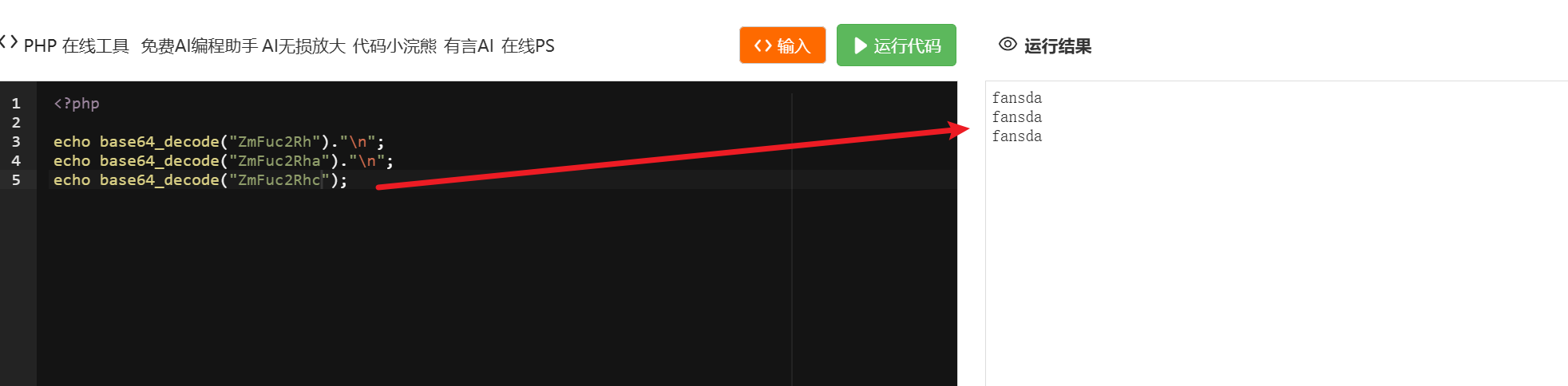 1 2 3 4 5 6 <?php echo file_get_contents ("php://filter/convert.iconv.CP866.CSUNICODE|convert.iconv.CSISOLATIN5.ISO_6937-2|convert.iconv.CP950.UTF-16BE|convert.base64-decode|convert.base64-encode/resource=data://,sunrt" )."\n" ;运行结果: 4 sunrg==